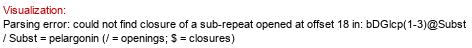| Synthesized dimer: DGlcp(1-?)Subst // Subst = genistein = SMILES O=C1C(C2=CC={54}C(O)C=C2)=COC3=C1{5}C(O)={6}C{7}C(O)={8}C3 Donor (ID 33557): ?DGlcp(1-P-P-5)xXnucU Acceptor (ID 33696): Subst // Subst = genistein = SMILES O=C1C(C2=CC={54}C(O)C=C2)=COC3=C1{5}C(O)={6}C{7}C(O)={8}C3 Status: evidence in vitro Confirmation methods: in vitro (purified protein) ID: 4023 | Organism (ID 17339): Lotus japonicus Organ/tissue: root, leaf, seed, stem, flower Full structure (ID 33741): | ||