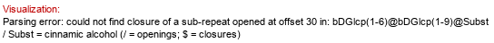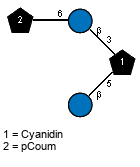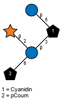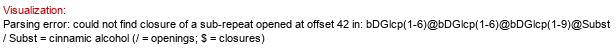 | Synthesized dimer: bDGlcp(1-6)bDGlcp Donor (ID 33557): ?DGlcp(1-P-P-5)xXnucU Acceptor (ID 35279): bDGlcp(1-4)Subst // Subst = p-coumaric alcohol Status: evidence in vitro Confirmation methods: expression in E.coli (as whole-cell biocatalyst) ID: 4035 Notes: Product common name: triandrin D. | Organism (ID 14823): Catharanthus roseus Expressed in: E. coli Full structure (ID 35280): |