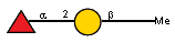 | Synthesized dimer: aDGalp(1-3)bDGalp Donor (ID 33991): ?DGalp(1-P-P-5)xXnucU Acceptor (ID 34373): bDGalp(1-3)[Ac(1-2)]aDGalpN(1-1)Me Status: evidence in vitro Confirmation methods: in vitro (purified protein) ID: 2073 | Organism (ID 4129): Escherichia coli O86:K62:H2 Full structure (ID 34374): Molecule role (analog of): O-antigen | Yi et al. 2005 DOI: 10.1021/ja045021y | |