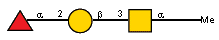 | Synthesized dimer: aDGalp(1-3)bDGalp Donor (ID 33991): ?DGalp(1-P-P-5)xXnucU Acceptor (ID 34372): -4)aLFucp(1-2)bDGalp(1-3)[Ac(1-2)]aDGalpN(1-3)[Ac(1-2)]bDGalpN(1- Status: indirect evidence in vivo Confirmation methods: mutation, in silico ID: 2072 | Organism (ID 4129): Escherichia coli O86:K62:H2 Full structure (ID 4255): CSDB ID(s): 20667, 25273, 30366, 108706, 115586, 1439, 1592, 10035, 10548, 20043, 20120, 20508 Molecule role: O-antigen | Yi et al. 2006b DOI: 10.1016/j.carres.2006.06.009 Feng et al. 2005a DOI: 10.1016/j.vetmic.2004.12.021 Yi et al. 2005 DOI: 10.1021/ja045021y | |