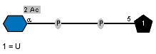 | Enzyme name: QhbA (WeeI) Enzyme GenBank ID: DAA64737.1* | Synthesized dimer: S3HOBut(1-4)aDQuipN4N Acceptor (ID 35223): Ac(1-2)aDQuipN4N(1-P-P-5)xXnucU Status: evidence in vitro Confirmation methods: Crictallographic analysis ID: 3849 Notes: gene cluster name: KL39 | Organism (ID 6514): Acinetobacter baumannii AYE Full structure (ID 35224): Molecule role: activated monosaccharide | Kenyon et al. 2016b DOI: 10.1099/mic.0.000313 Morrison et al. 2013 DOI: 10.1016/j.abb.2013.05.011 |